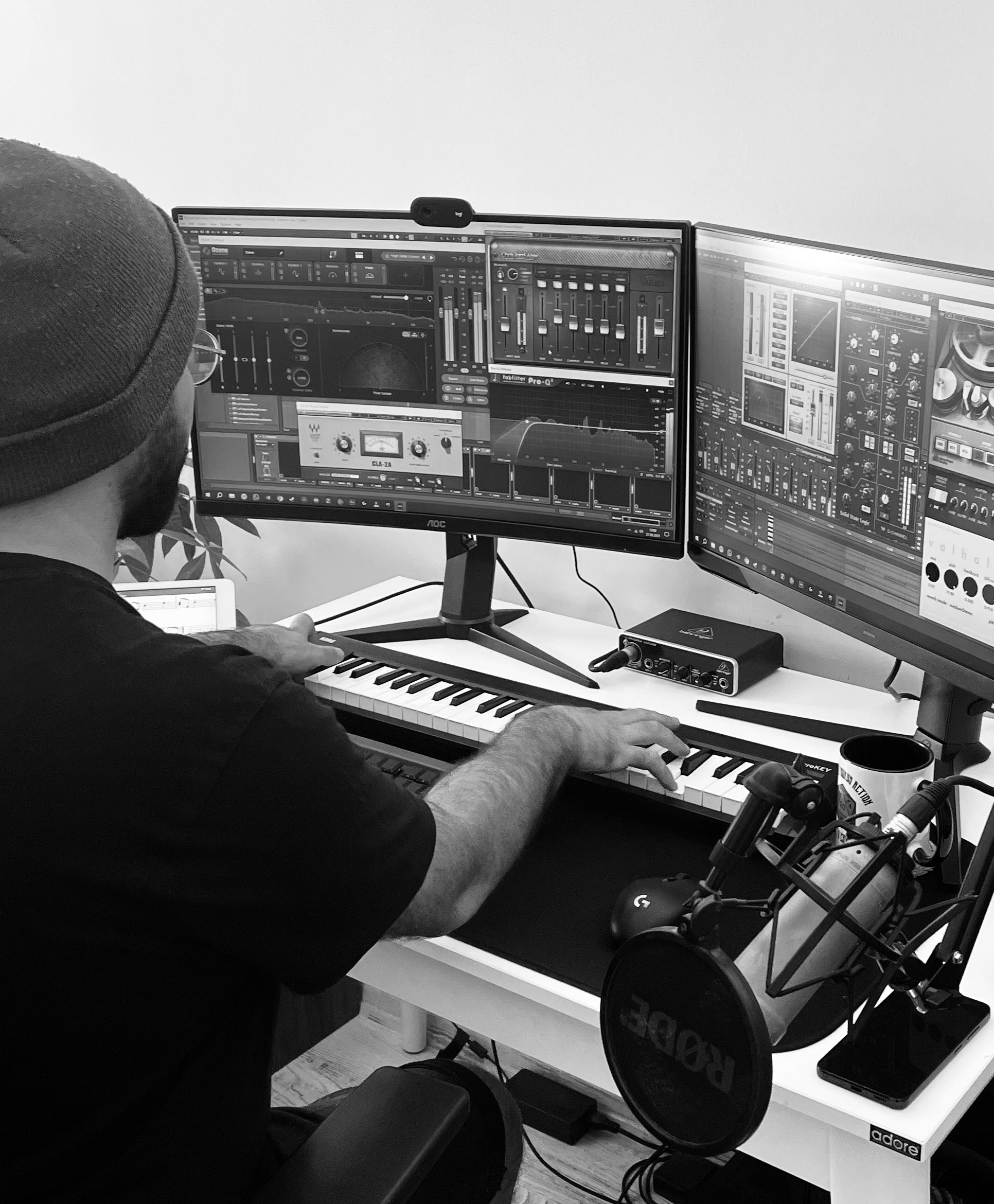 He began his career as a live musician, performing guitar and vocals in rock, blues and electronic bands in 2008. During this period, he also started writing orchestral arrangements alongside his songs, which led him to explore the structural and emotional differences between genres. This approach naturally expanded into recording, mixing, and mastering, forming the foundation of his production expertise.